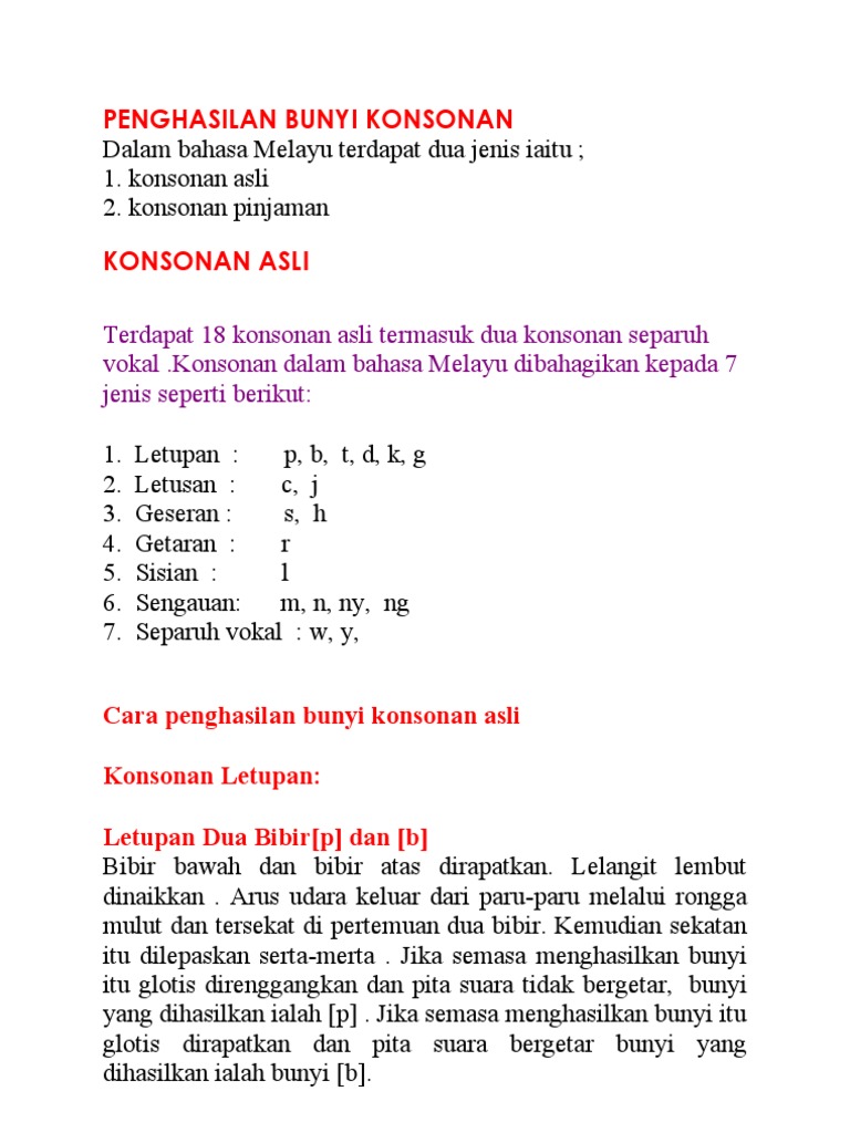 Penghasilan Bunyi Konsonan Pdf